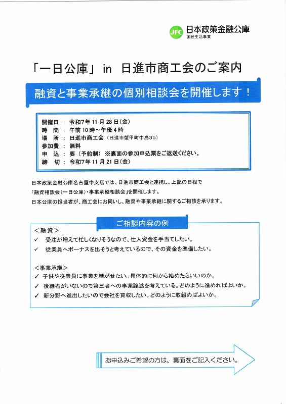 > 「一日公庫」in日進市商工会のご案内