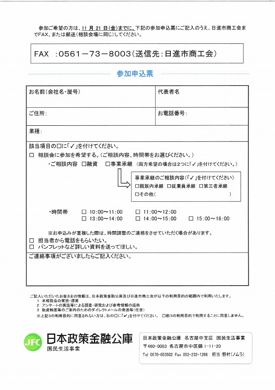 「一日公庫」in日進市商工会のご案内