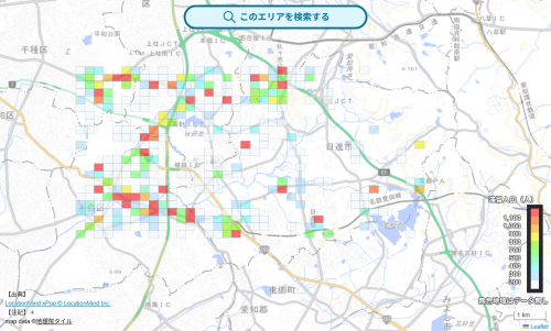 今回は「男性」「40代」「13時・19時」を対象に分析していますが、条件を変えての分析や、「通過人口」の分析も可能です。